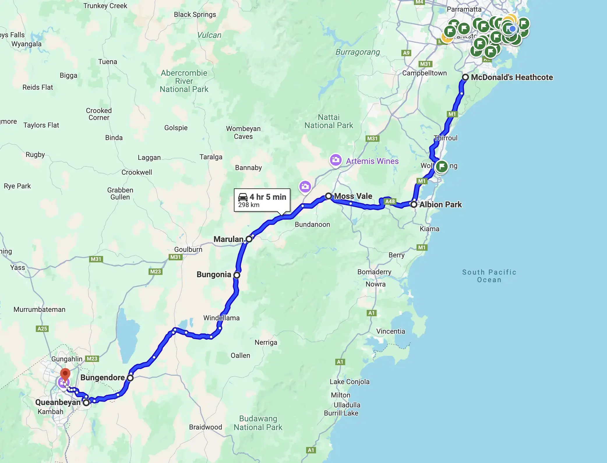 📅 Saturday, 11th April 2026This year’s run to Canberra will take us through a scenic back road route, avoiding the main freeway. The drive time is approximately five hours.